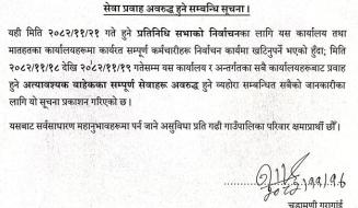 सेवा प्रवाह अवरुद्ध हुने सम्बन्धी सूचना ।