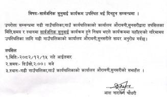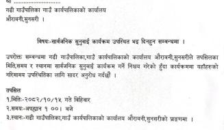 सार्वजनिक सुनुवाई कार्यक्रम उपस्थित भई दिनहुन सम्बन्धमा ।