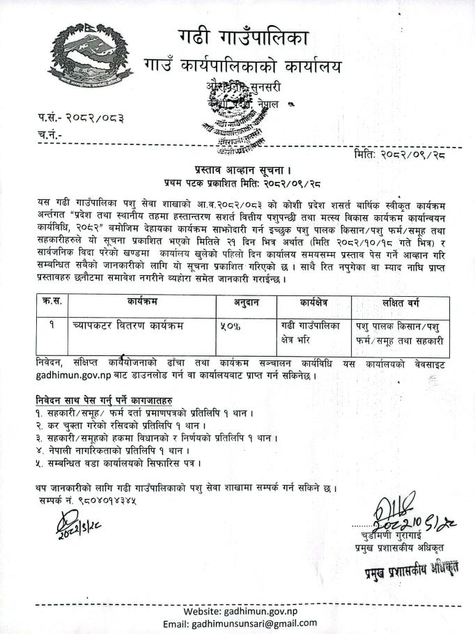 प्रस्ताव आह्वान सम्बन्धी सूचना ।