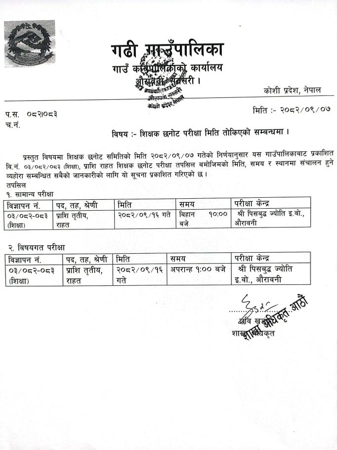 » शिक्षक छनोट परिक्षा मिति तोकिएको सम्बन्धी सूचना ।