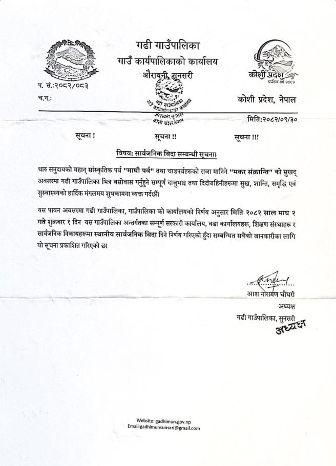 » सार्वजनिक बिदा सम्बन्धी सूचना ।