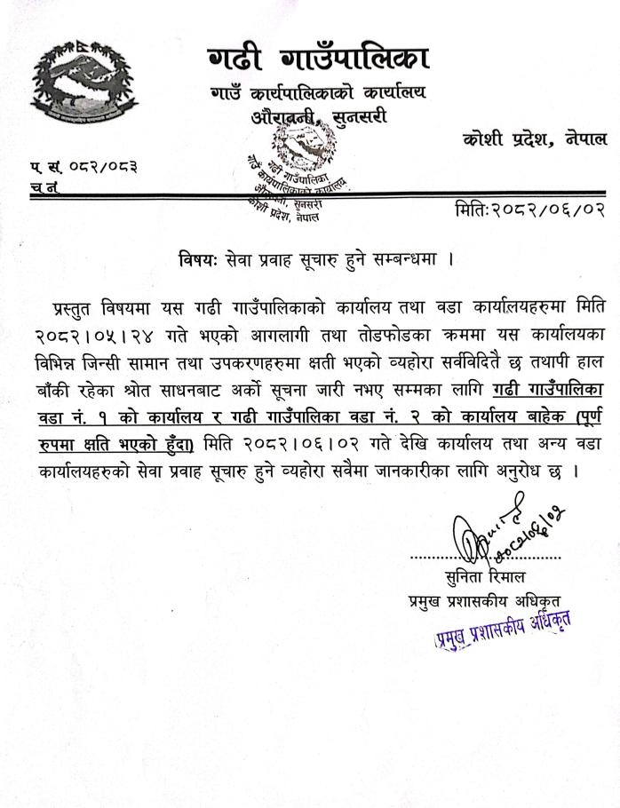 सेवा प्रवाह सूचारु हुने सम्बन्धमा ।