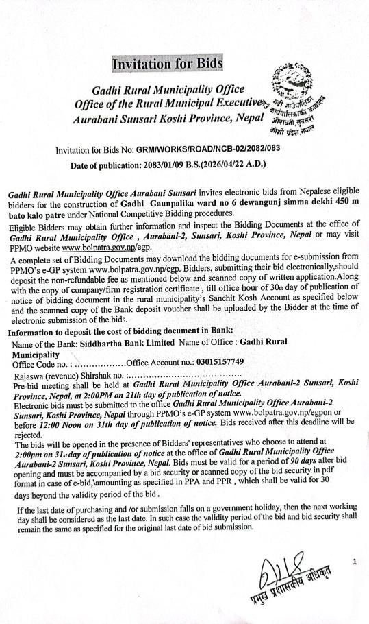 सार्वजनिक खरिद/बोलपत्र सूचना