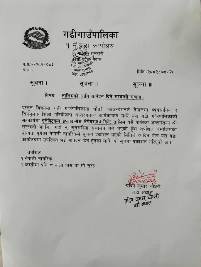 » तालिमको लागि आवेदन दिने सम्बन्धी सूचना ।