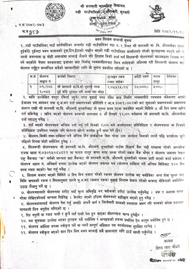 सार्वजनिक खरिद/बोलपत्र सूचना