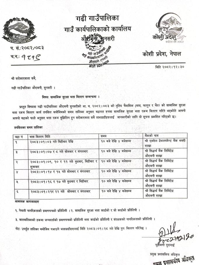 सामाजिक सुरक्षा भत्ता वितरण सम्बन्धमा ।