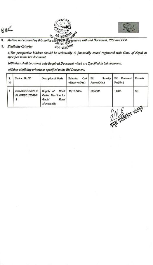 सार्वजनिक खरिद/बोलपत्र सूचना
