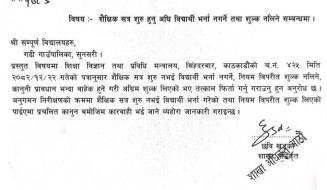 शैक्षिक सत्र शुरु हुनु अघि विधार्थी भर्ना नगर्ने तथा शुल्क नलिने सम्बन्धमा ।