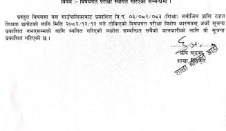 विषयगत परीक्षा स्थगित गरिएको सम्बन्धमा ।