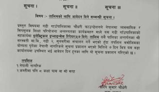 विज्ञापन प्रकाशन गरिएकाे सम्बन्धी सूचना ।