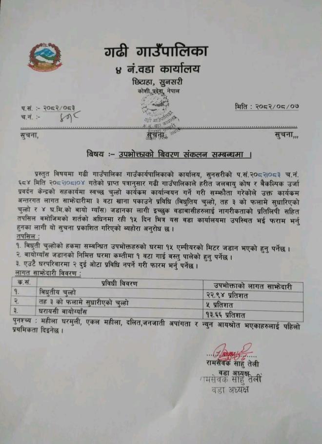 » उपभोक्ताको विवरण संकलन सम्बन्धी सूचना ।