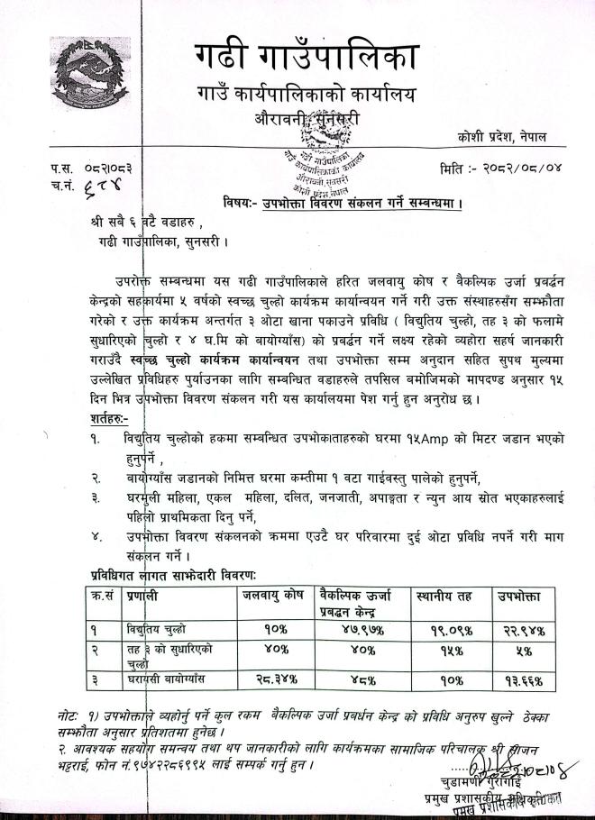 » उपभोक्ता विवरण संकलन गर्ने सम्बन्धी सूचना ।
