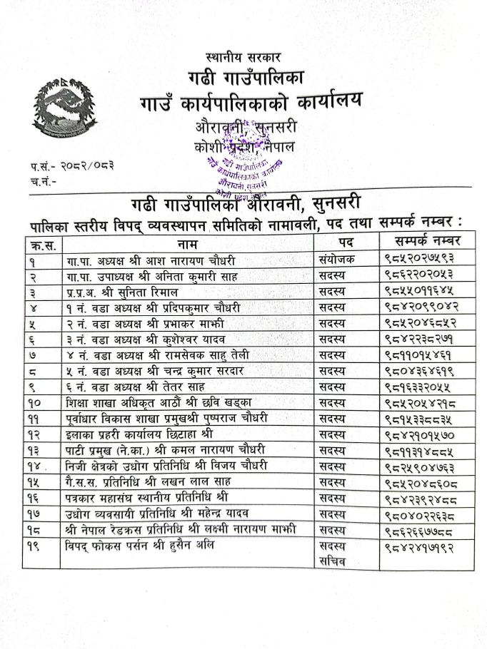 » पालिका स्तरीय विपद् व्यवस्थापन समितिको नामावली,पद तथा सम्पर्क नम्बर ।