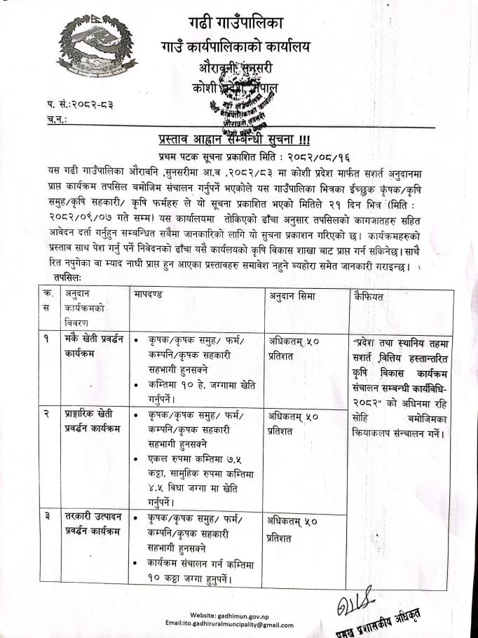 गढी गाउँपालिकाको आर्थिक वर्ष २०८२/०८३ को वार्षिक नीति तथा कार्यक्रम |