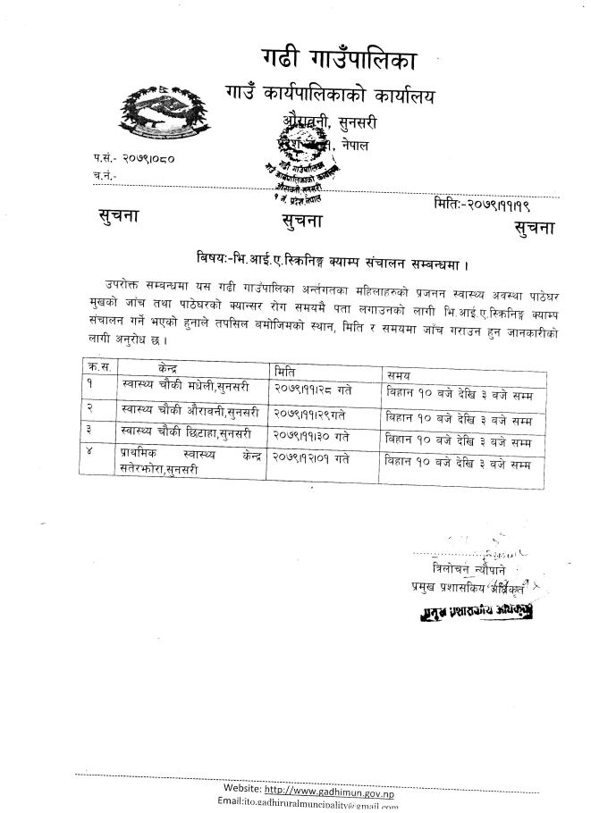 भि.आई.ए. स्क्रिनिङ्ग क्याम्प संचालन सम्बन्धी सूचना |