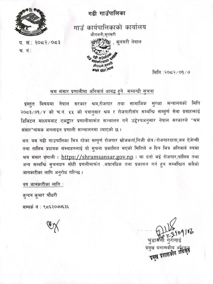 श्रम संसार प्रणालीमा अनिवार्य आबद्ध हुने सम्बन्धी सूचना ।