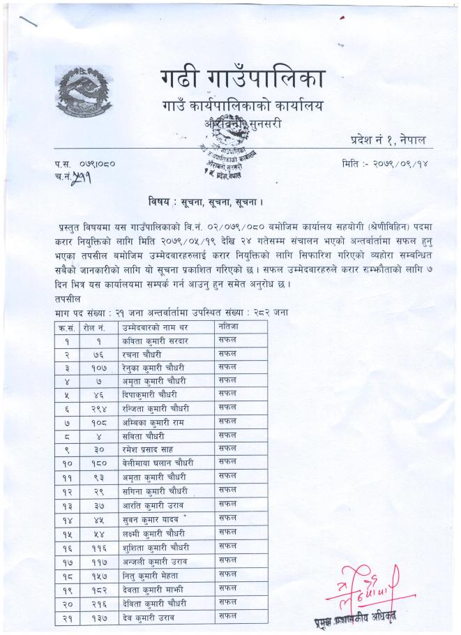 नगरपालिकाका निर्णयहरु