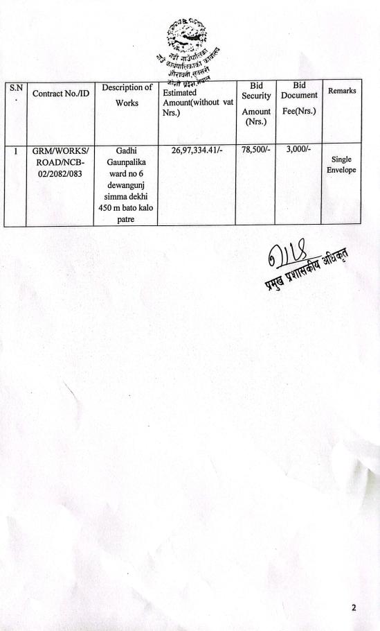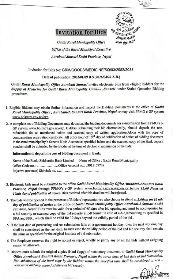 सार्वजनिक खरिद/बोलपत्र सूचना