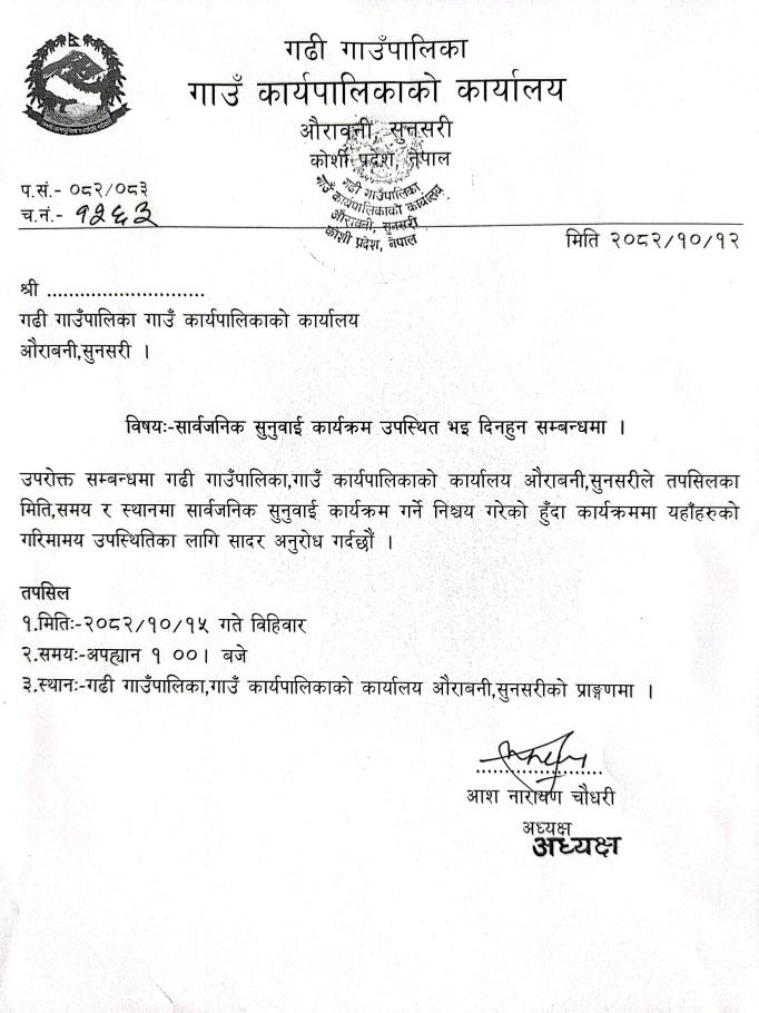 सार्वजनिक सुनुवाई कार्यक्रम उपस्थित भई दिनहुन सम्बन्धमा ।