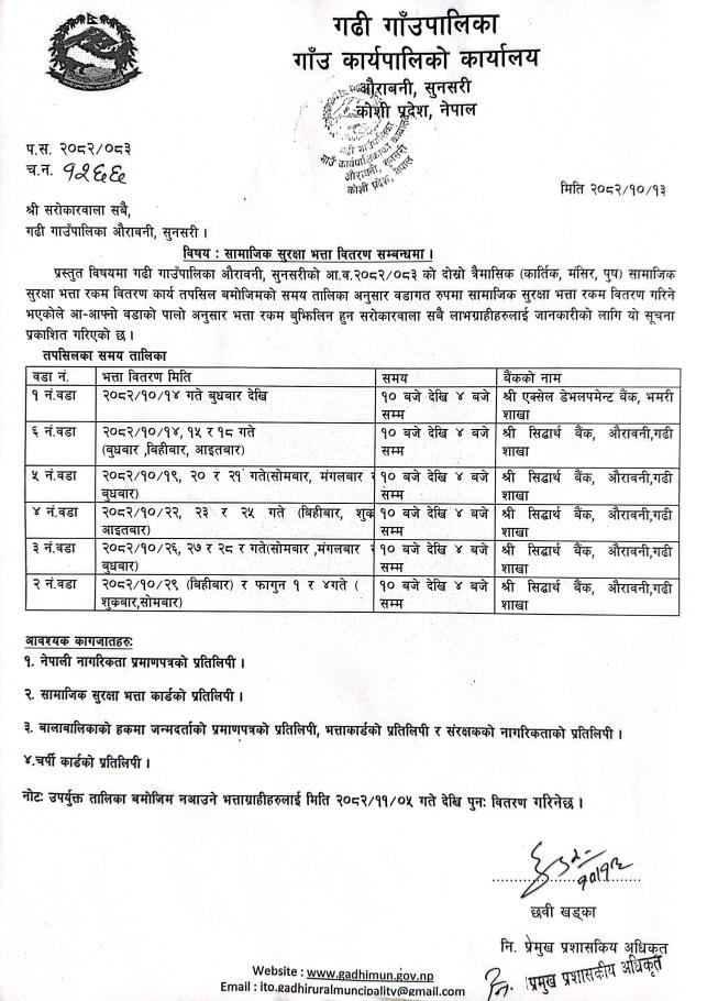 सामाजिक सुरक्षा भत्ता वितरण सम्बन्धमा ।