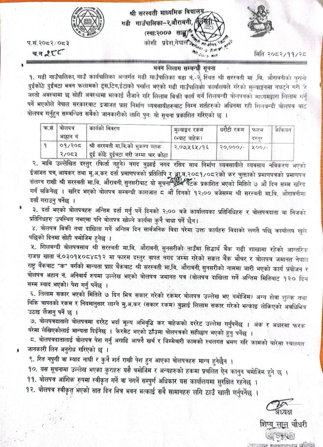 » दोस्रो पटक भवन लिलाम सम्बन्धी सूचना ।