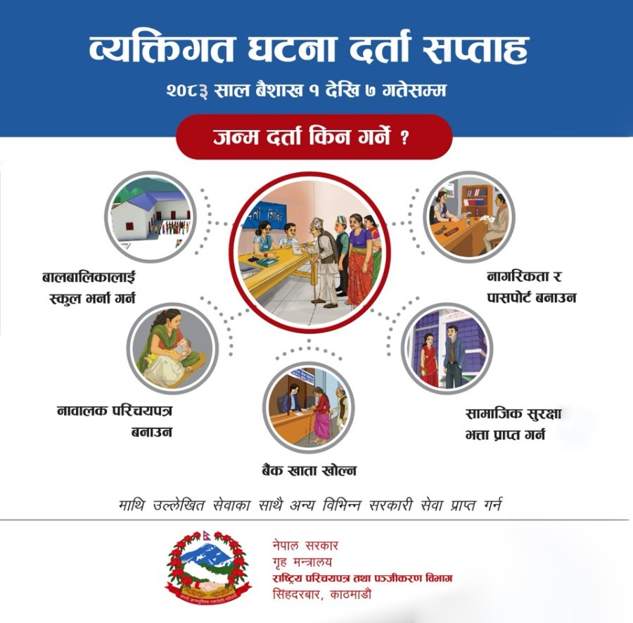 व्यक्तिगत घटना दर्ता सप्ताह २०८३ साल बैशाख १ देखि ७ गतेसम्म ।